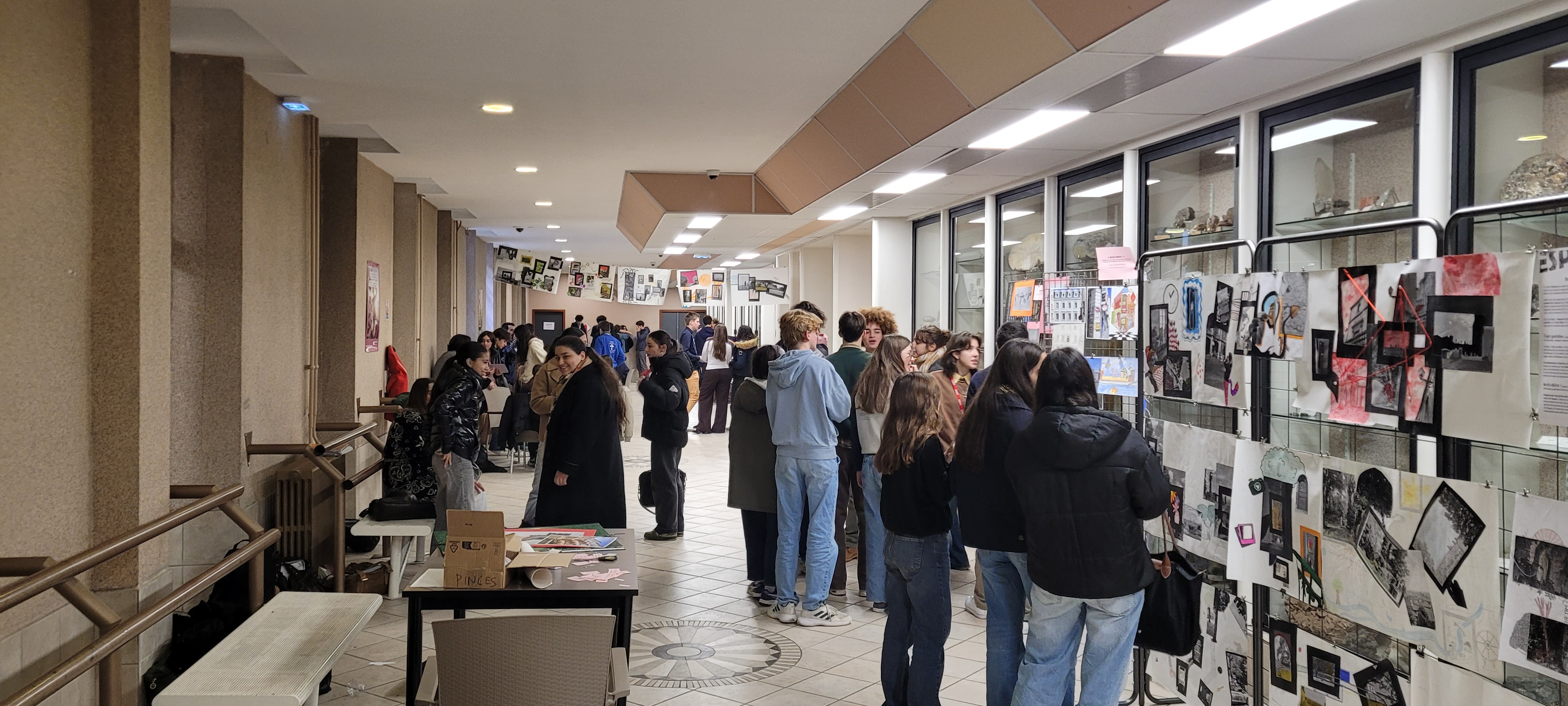Vendredi 5 Décembre, le temps d’un court après-midi, a eu lieu un accrochage éphémère pour montrer les travaux récents de nos élèves de 1ère et Terminale option ainsi que ceux des 1ère Spécialité Arts-Plastiques.
